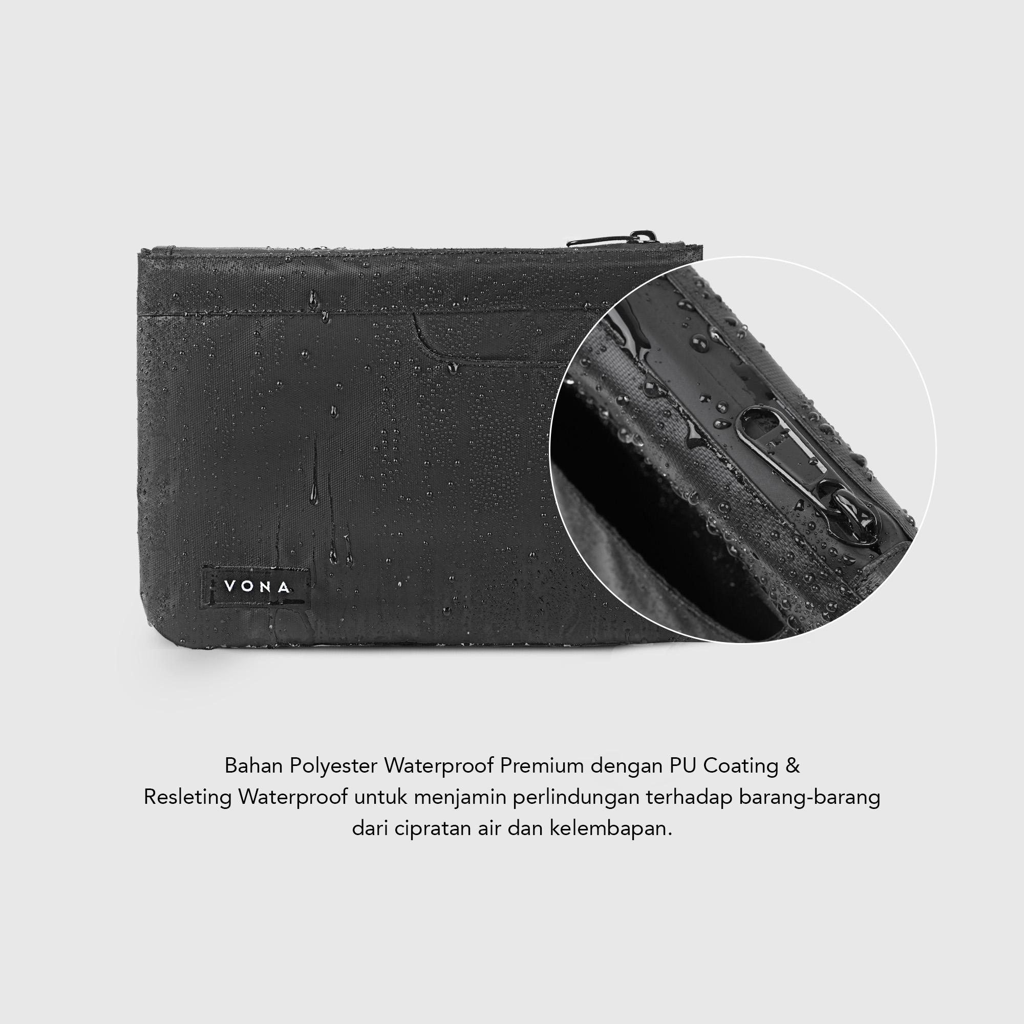 â–º Kompartemen/ruang : Terdapat 2 kompartemen utama dengan resleting/zipper tahan air, serta 1 slot di bagian depan.