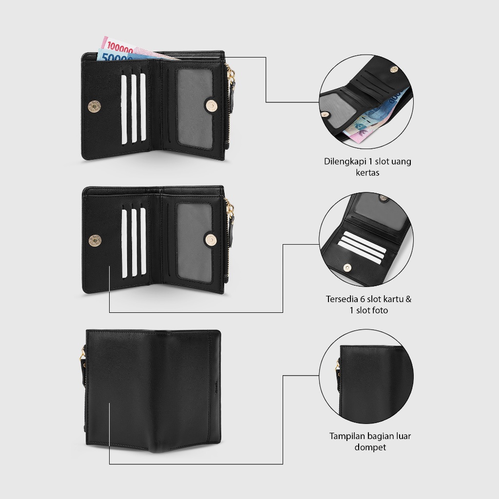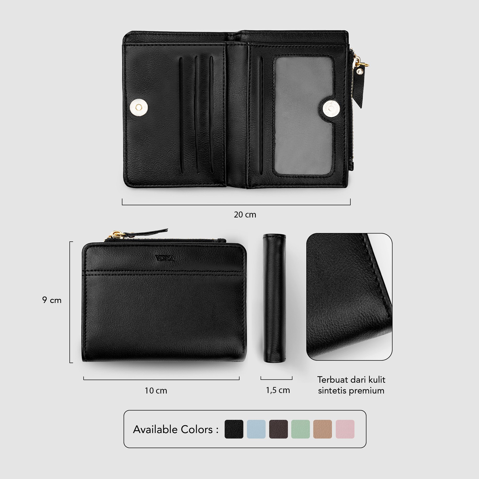 Model : Dompet medium 3/4 lipat 2, melebar kesamping (horizontal), dengan penutup kancing.