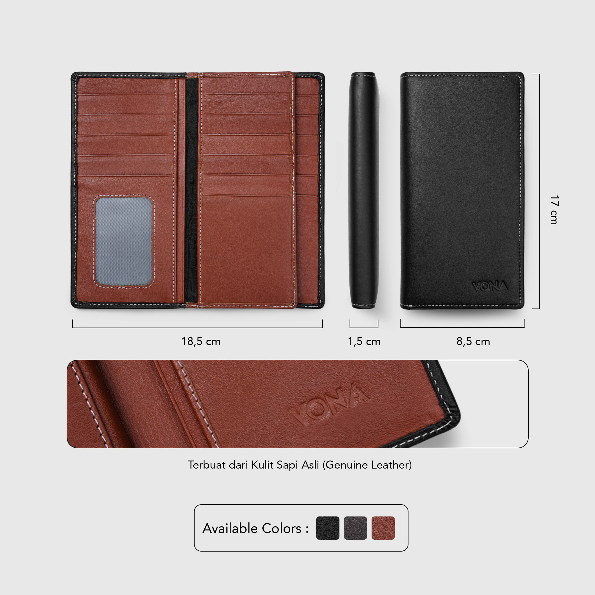 â–º Spesifikasi Bahan : Polos, Permukaan dompet halus – Memberikan kesan yang halus dan nyaman saat digunakan.