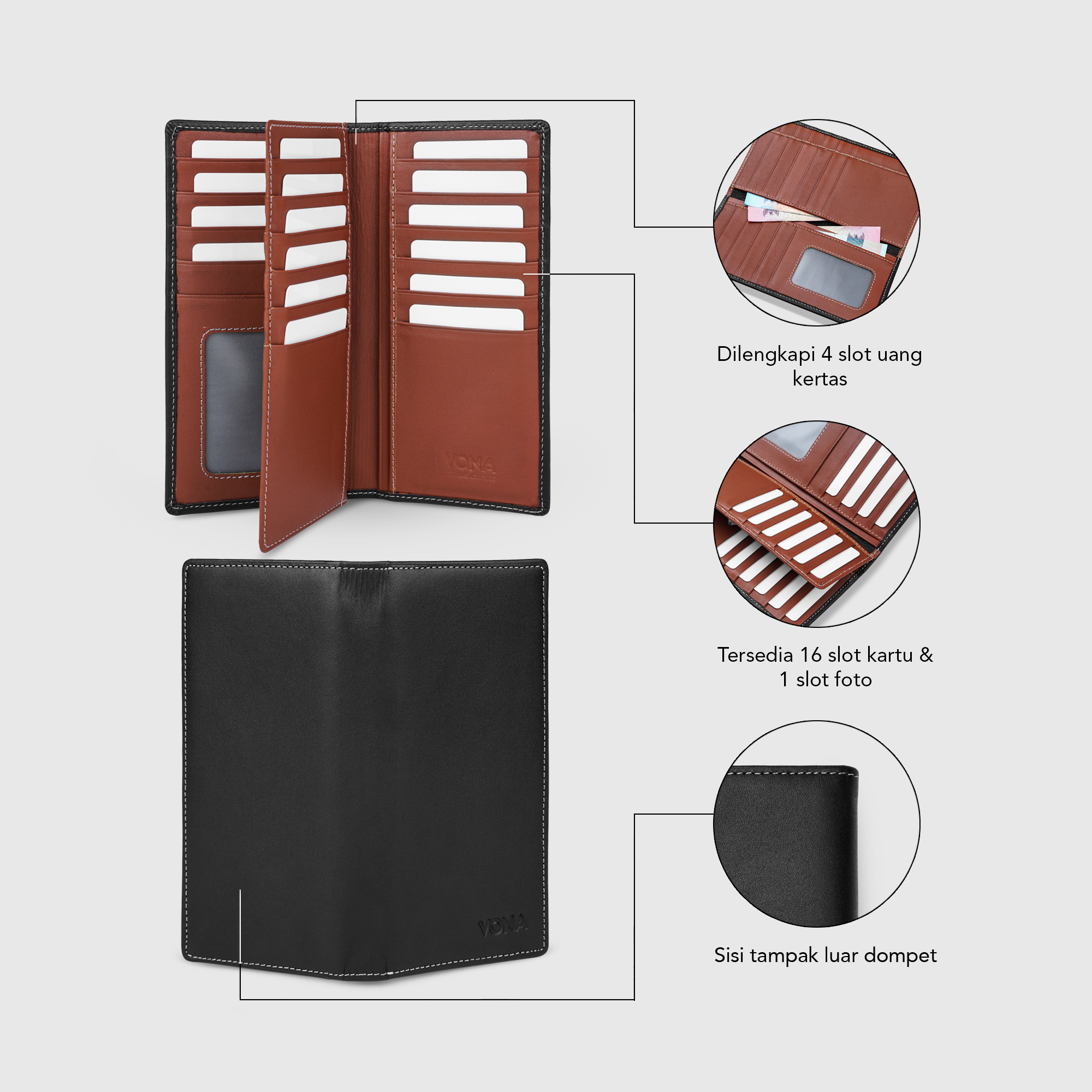 â–º Model : Vertikal Genuine Leather Wallet with Extra Center Flap (Dompet Kulit Asli Lipat 3 Melebar Ke Samping Dengan