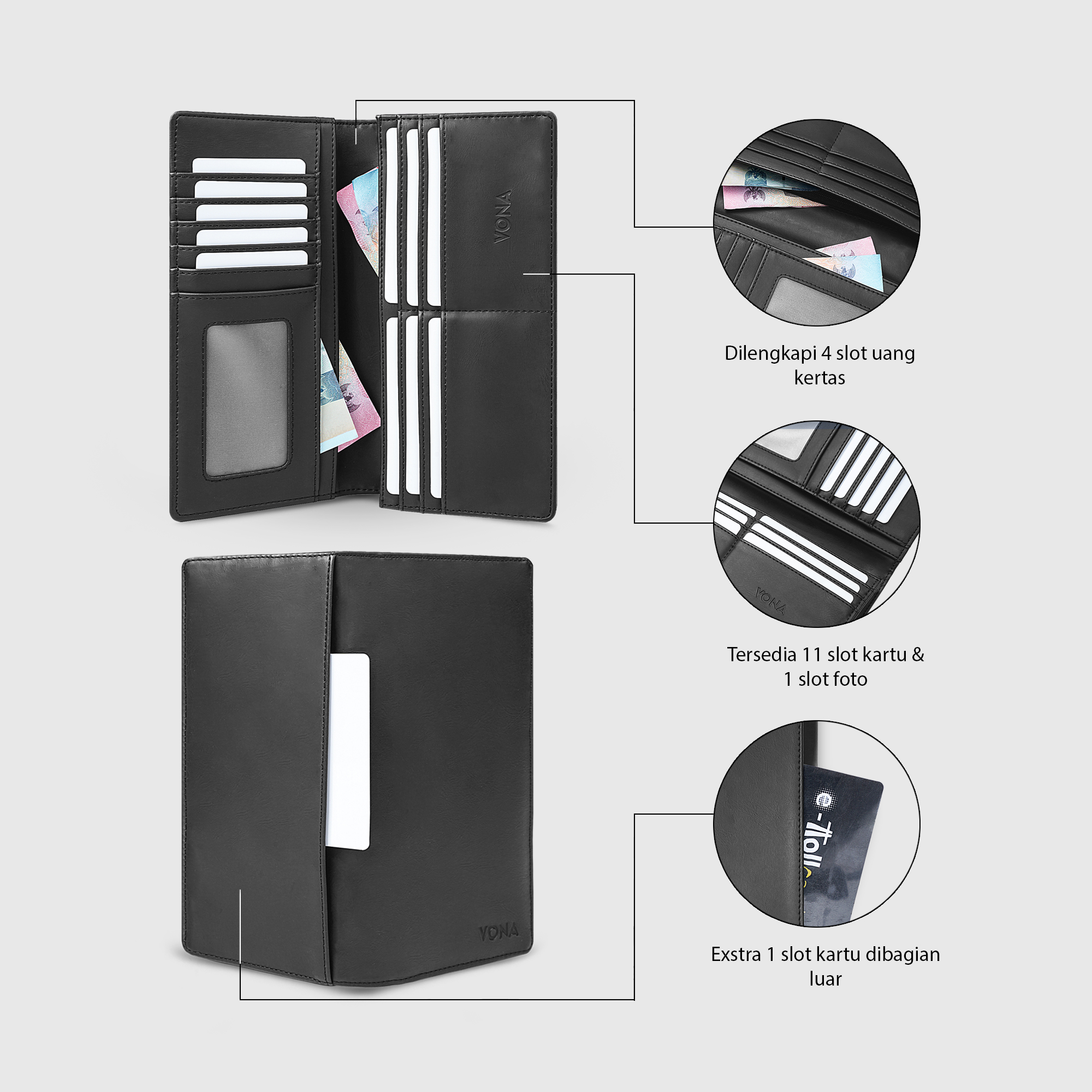 ► Slot Kartu : 11 – Memberikan ruang yang cukup untuk menyimpan berbagai kartu dengan tertata rapi dan terorganisir.