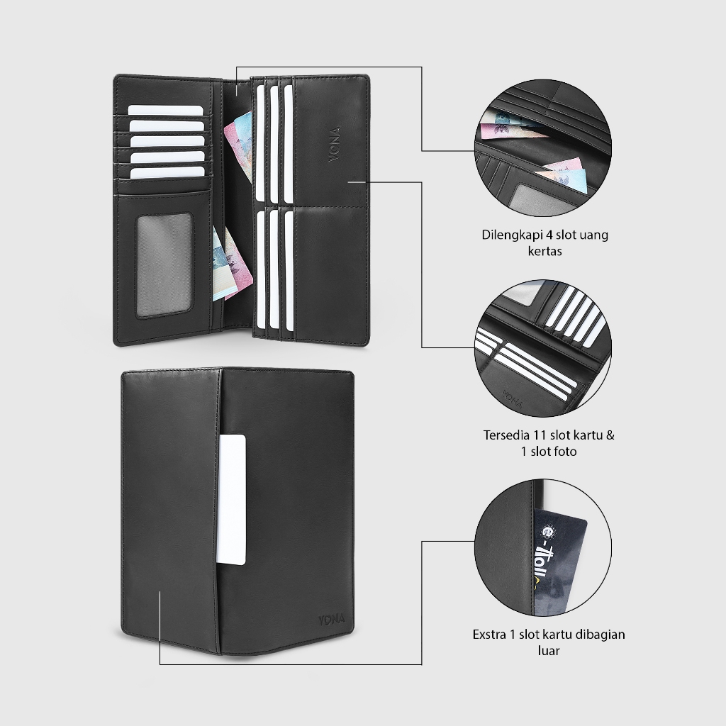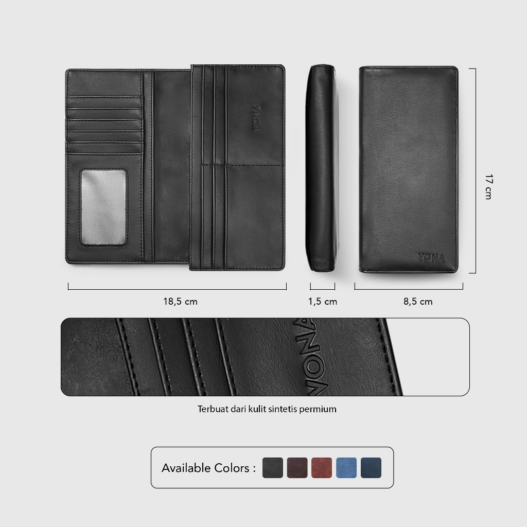 ► Spesifikasi Bahan : Polos, Permukaan dompet halus – Menonjolkan kesan modern dengan detail permukaan yang elegan.
