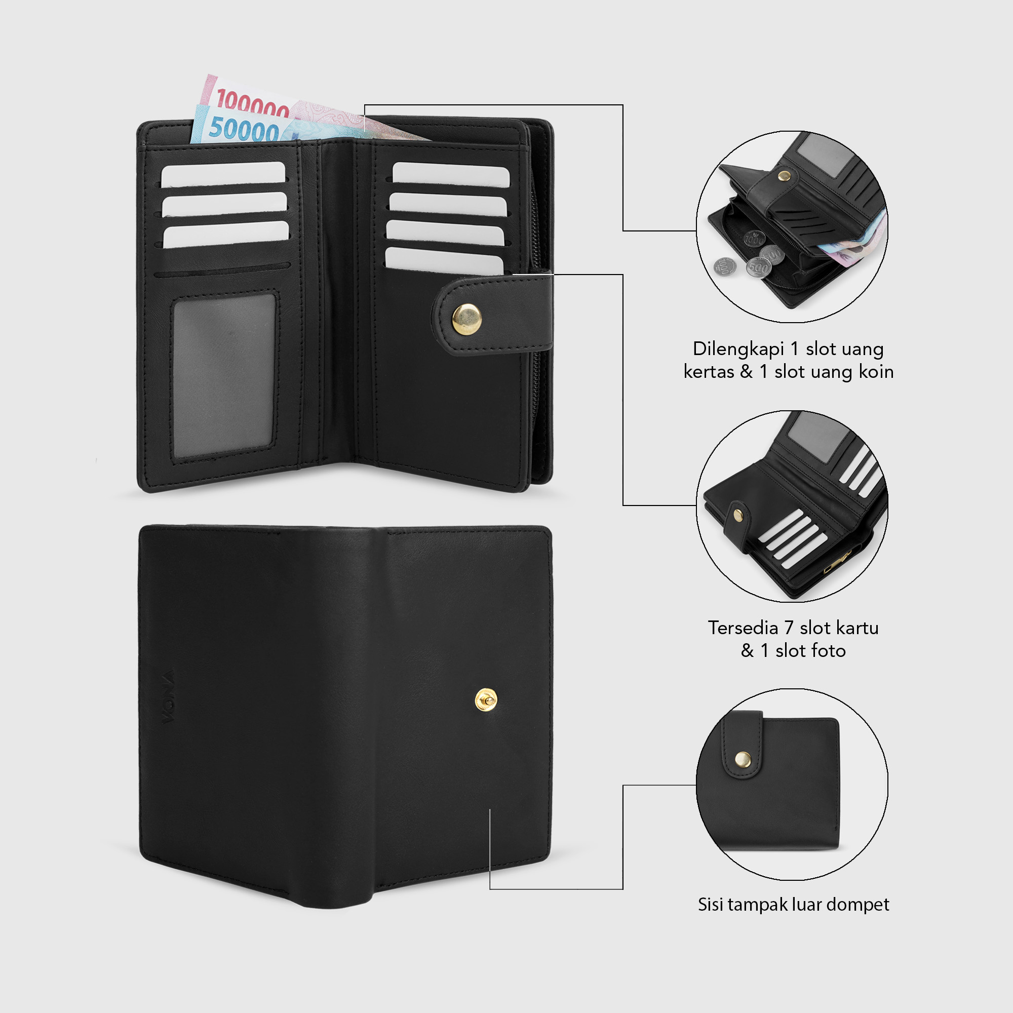 Model : Dompet 3/4 lipat 2 dengan zipper dan penutup kancing – Desain yang praktis dan aman.