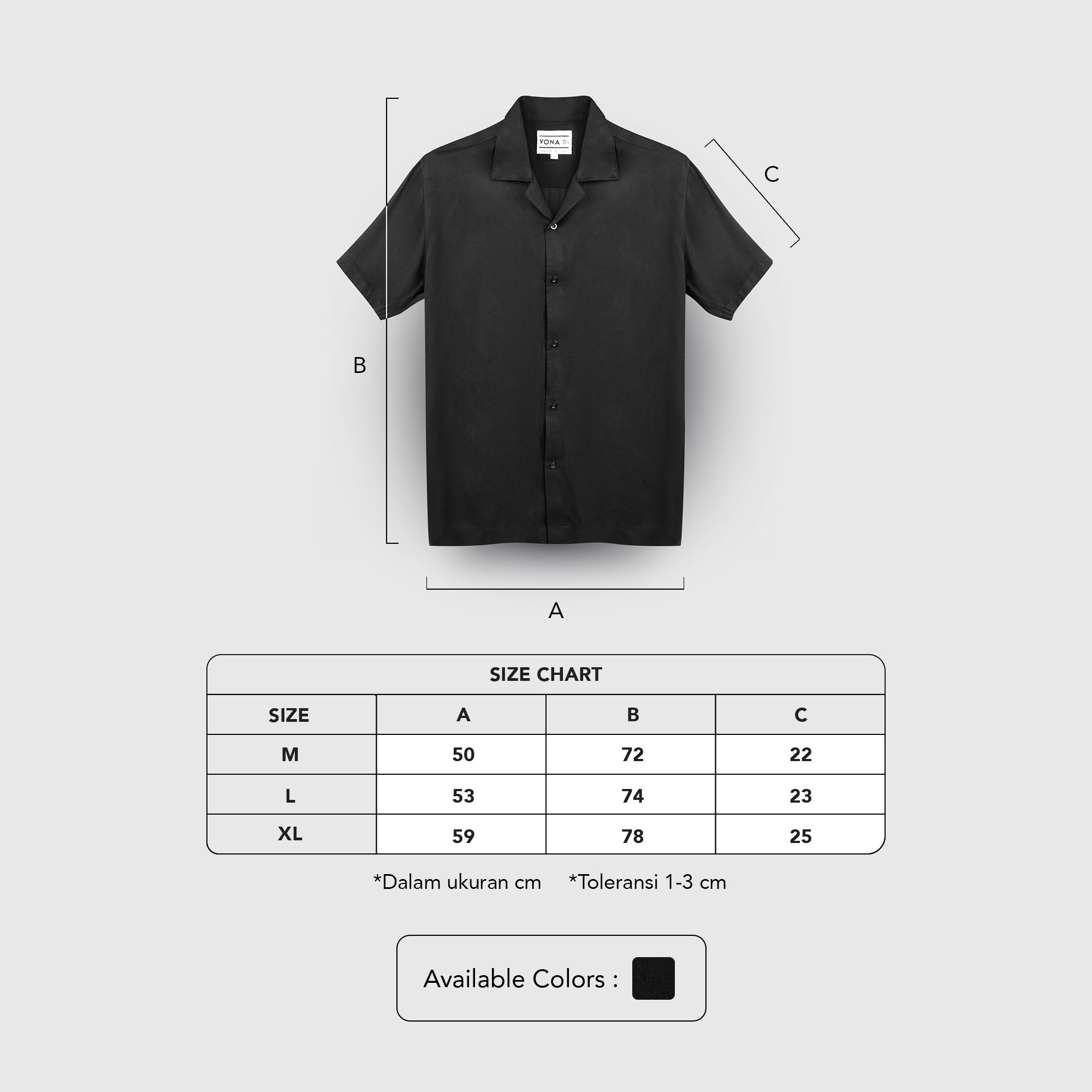 XL : 59 cm x 78 cm, Panjang Lengan 25 cm