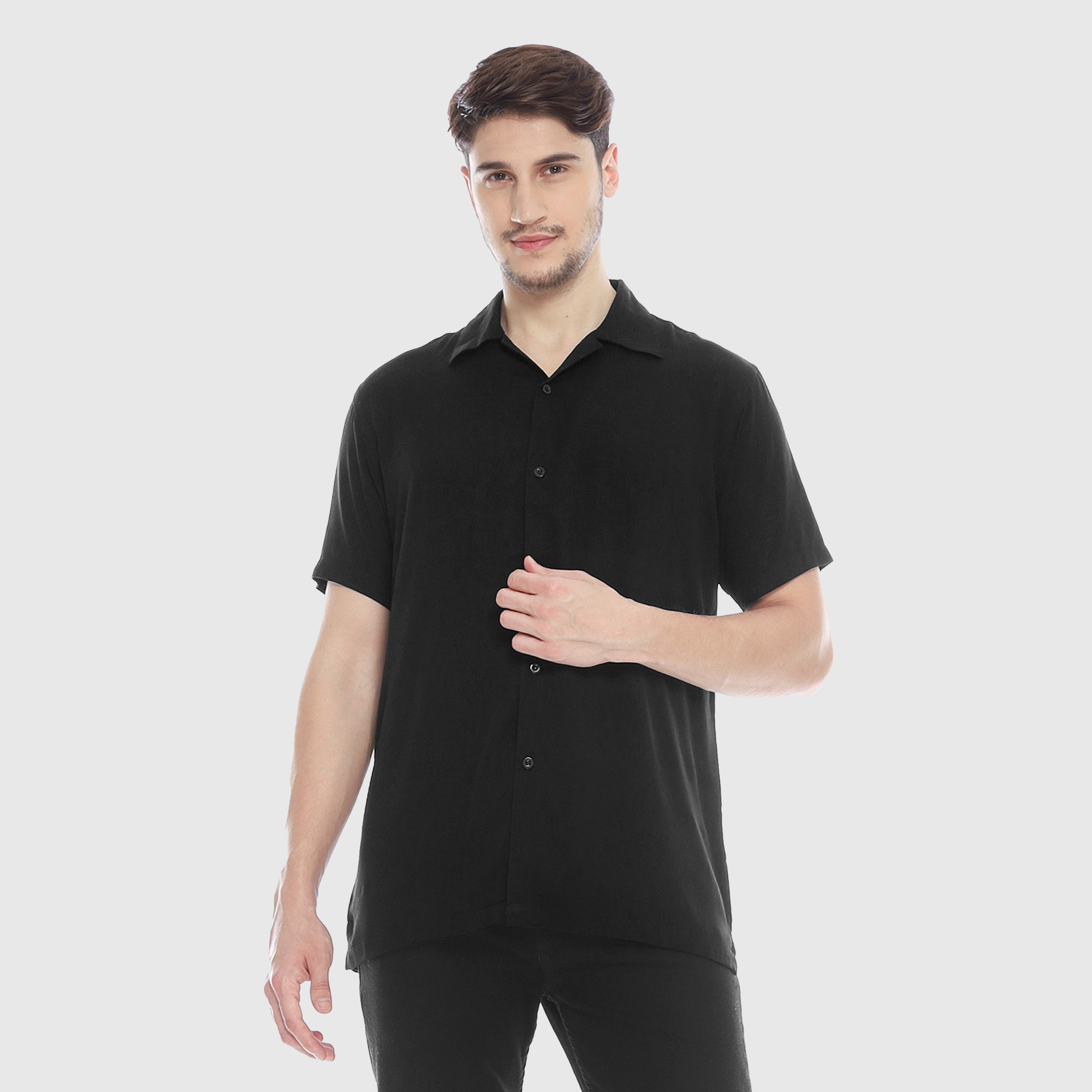 â–º Mode l: Kemeja Pria Lengan Pendek, dengan desain polos yang sederhana, menggunakan bahan yang adem.
