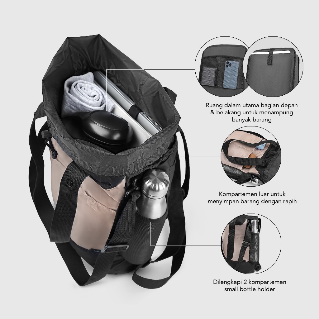 ► 3 mode penggunaan: 3 (Totebag, Backpack, dan Slingbag).