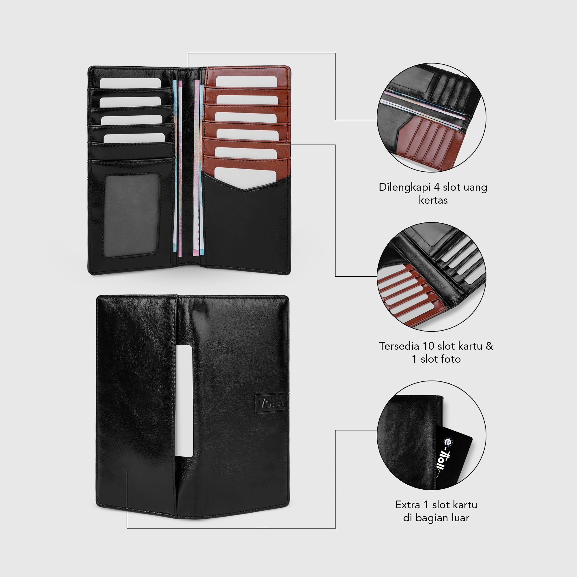 â–º Model: Dompet Panjang Lipat 2, Glossy, Kombinasi Warna pada Slot Kartu, melebar ke atas (vertikal).