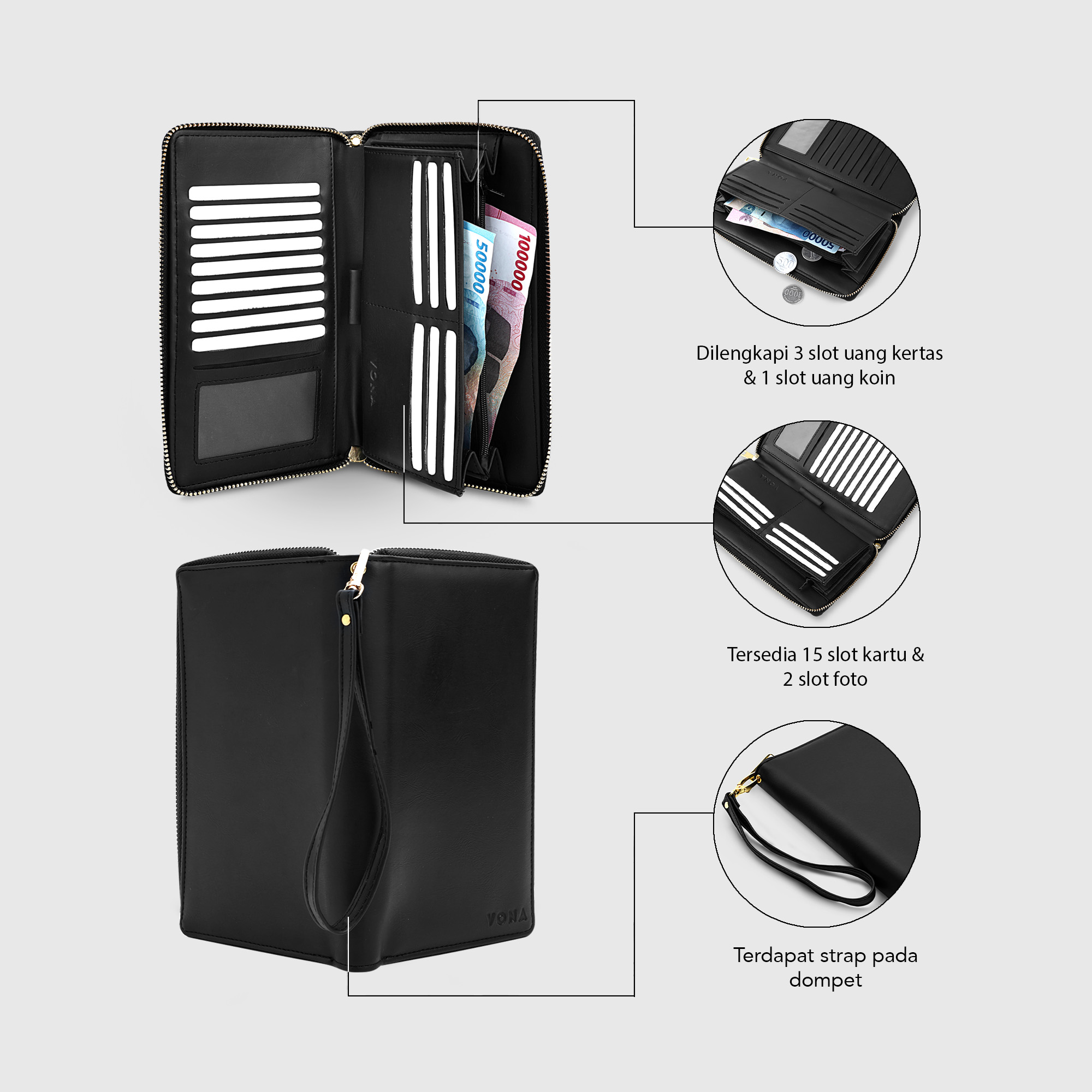 â–º Model : Dompet Panjang Lipat 2 dengan Tali Clutch, melebar ke atas (vertikal) – Desain yang fungsional dan stylish.