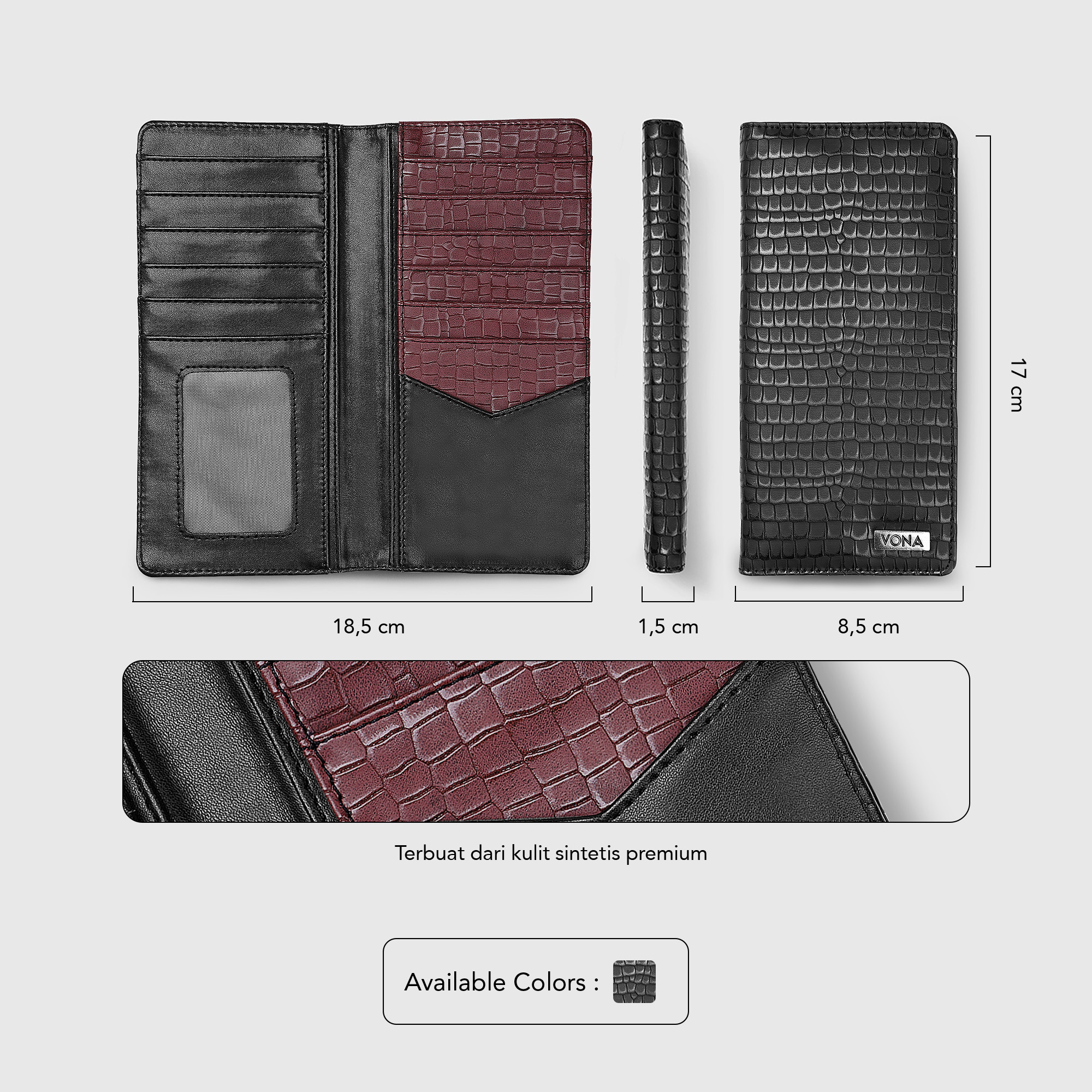 â–º Spesifikasi Bahan: Motif Croco, Kombinasi Warna pada Slot Kartu, Permukaan dompet halus – Memberikan tampilan yang menarik dengan sentuhan elegan.
