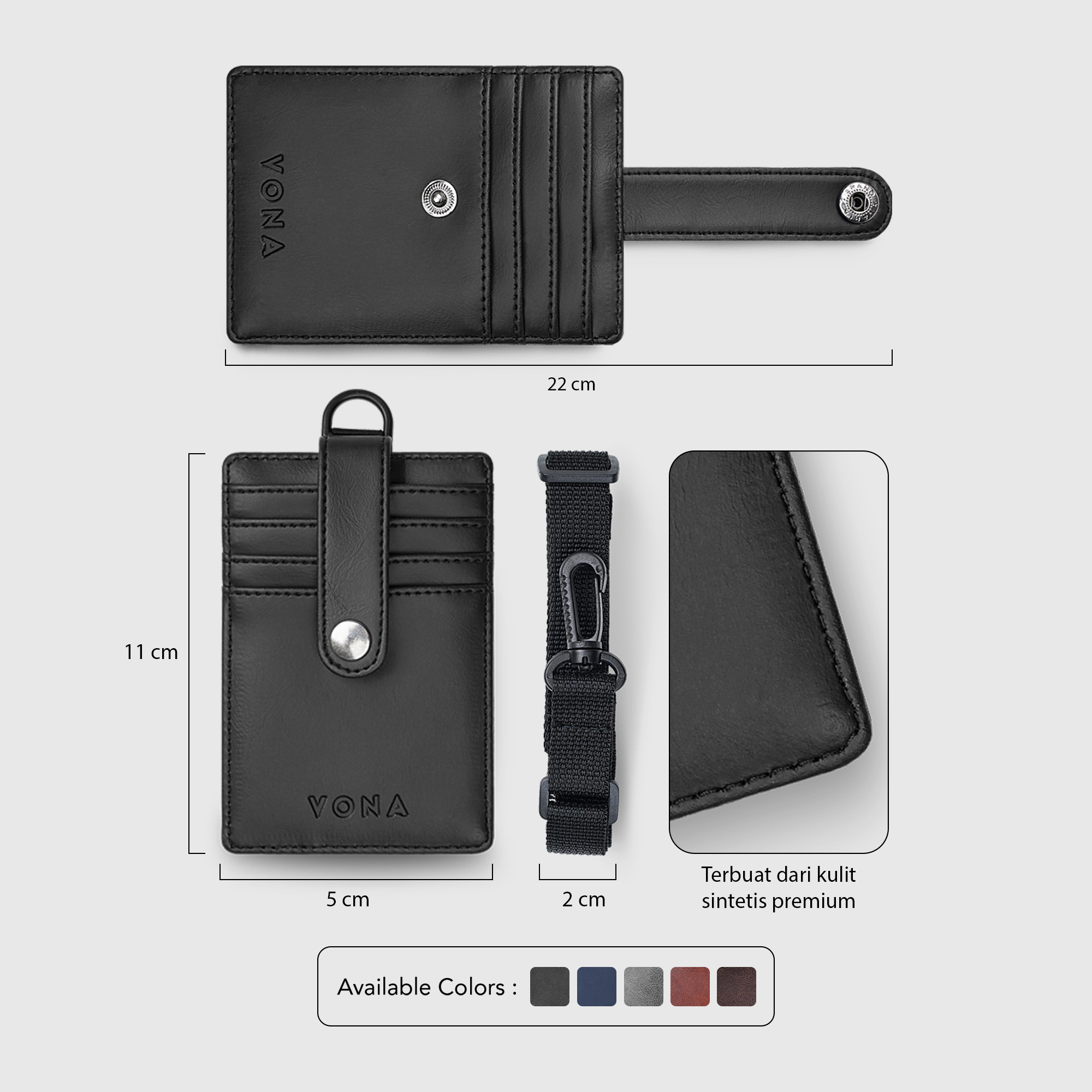 â–º Bahan : Kulit Sintetis Premium dengan tali lanyard bahan webbing halus